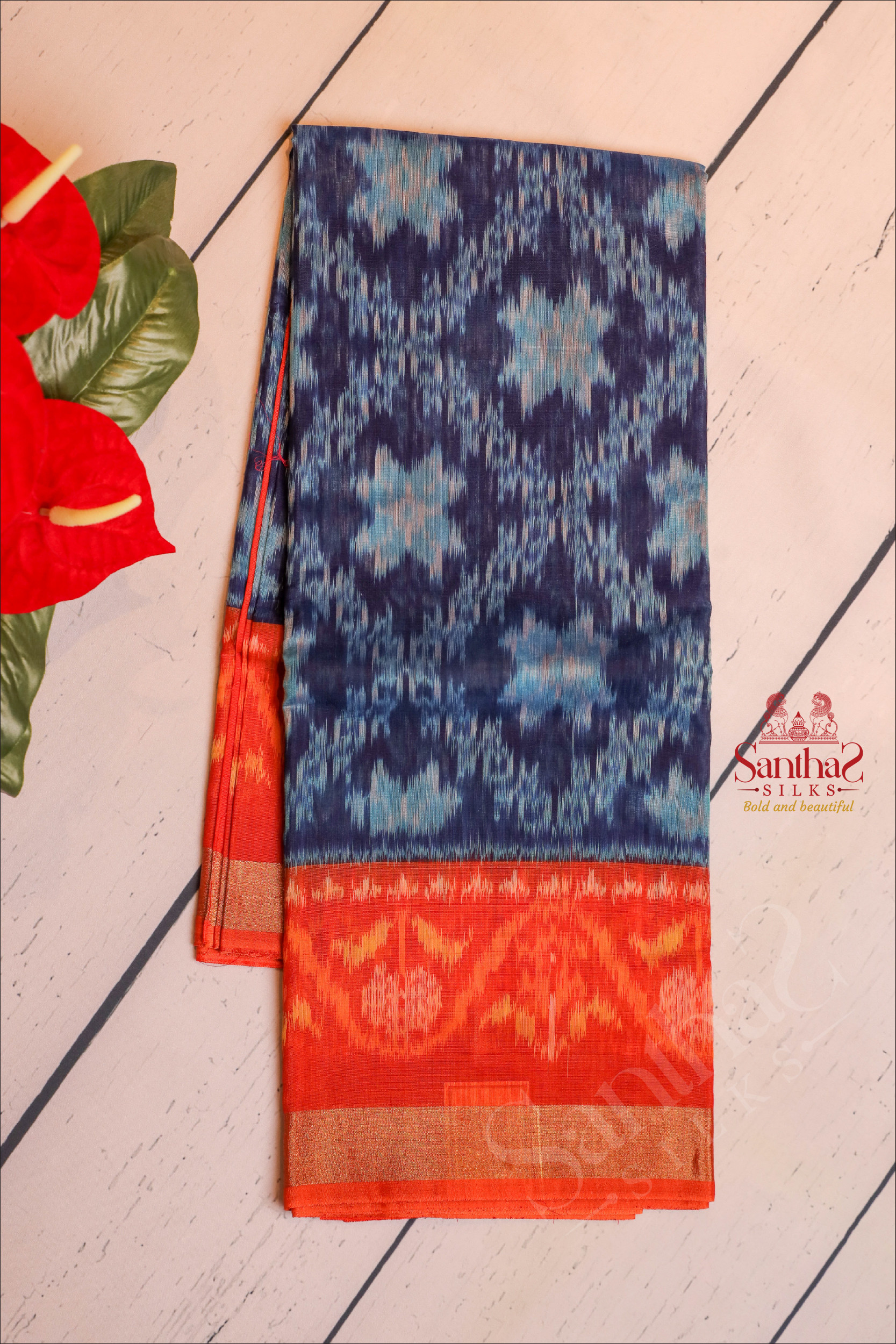 NAVY BLUE COLOUR BODY WITH POCHAMPALLY DESIGN AND CONTRAST PALLU & BLOUSE