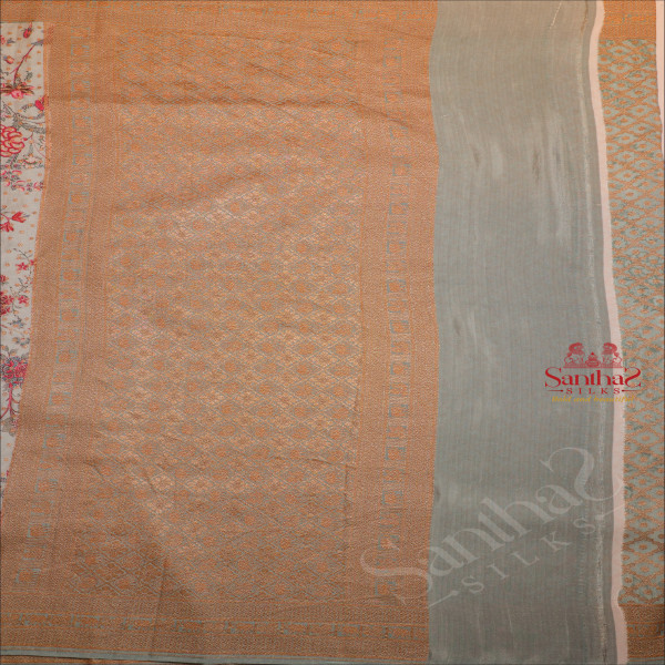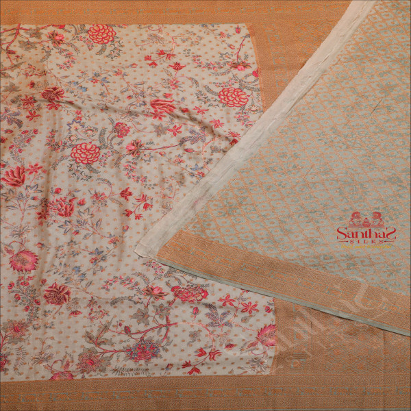 CREPE BANARAS SILK SAREE IN PALE SEA BLUE COLOUR WITH FLORAL DIGITAL PRINTS