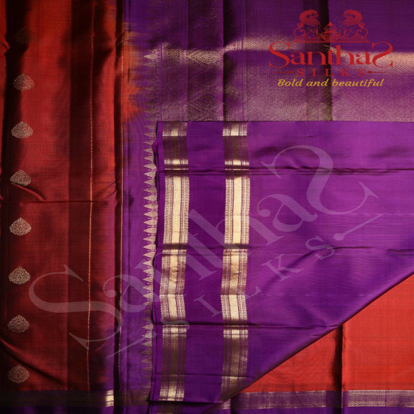 GINGER ORANGE COLOUR BODY GOLDEN ZARI BUTTA WITH CONTRAST BLOUSE & BORDER