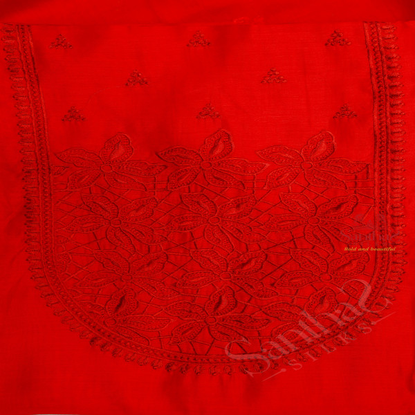 BLOOD RED SEMI TUSSAR UNSTITCHED SALWAR SUIT