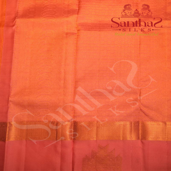 YELLOWISH PINK COLOUR BODY WITH GOLDEN ZARI CHECKED AND CONTRAST BLOUSE