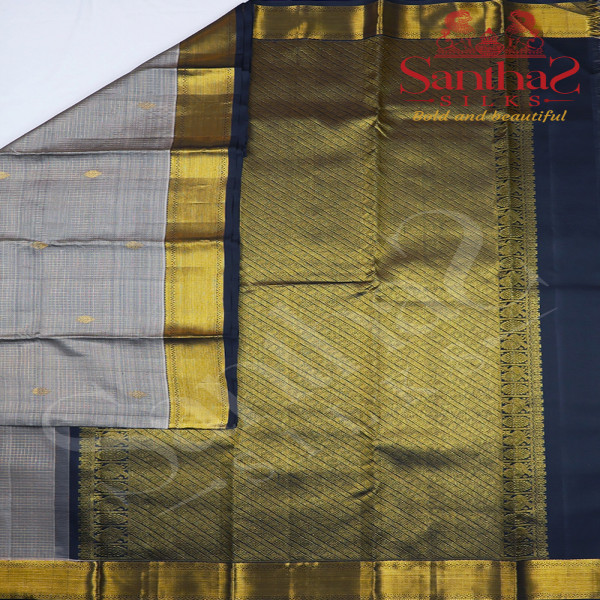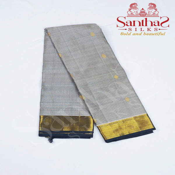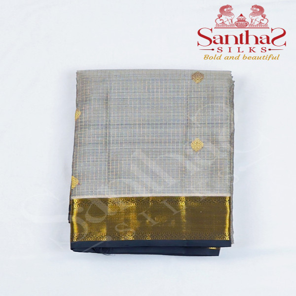 Grey Vairaoosi Pure Silk Saree with Balck Border