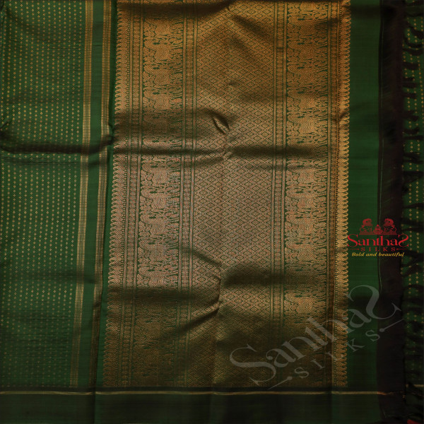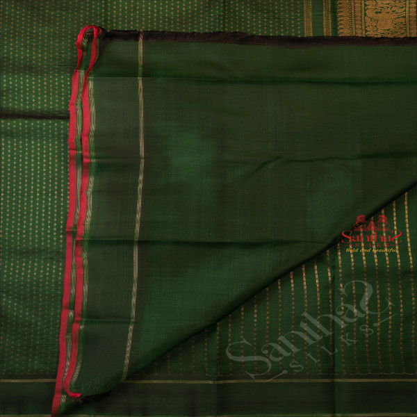 DARK GREEN COLOUR BODY WITH GOLDEN ZARI BUTTA WITH SELF BLOUSE & BORDER