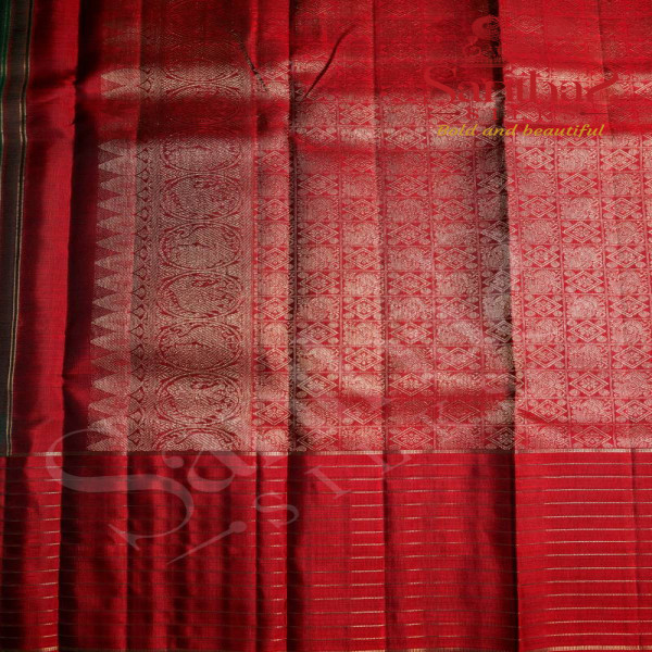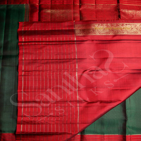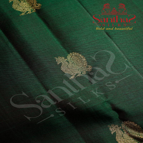 DARK GREEN COLOUR BODY ANNAM CHAKKARAM BUTTA WITH CONTRAST BLOUSE & BORDER