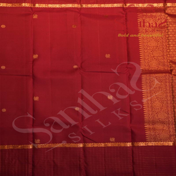 MAROON COLOUR BODY WITH GOLDEN ANNAM CHAKKARAM ZARI MOTIFS AND SELF BLOUSE