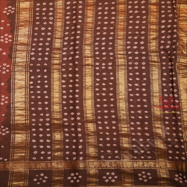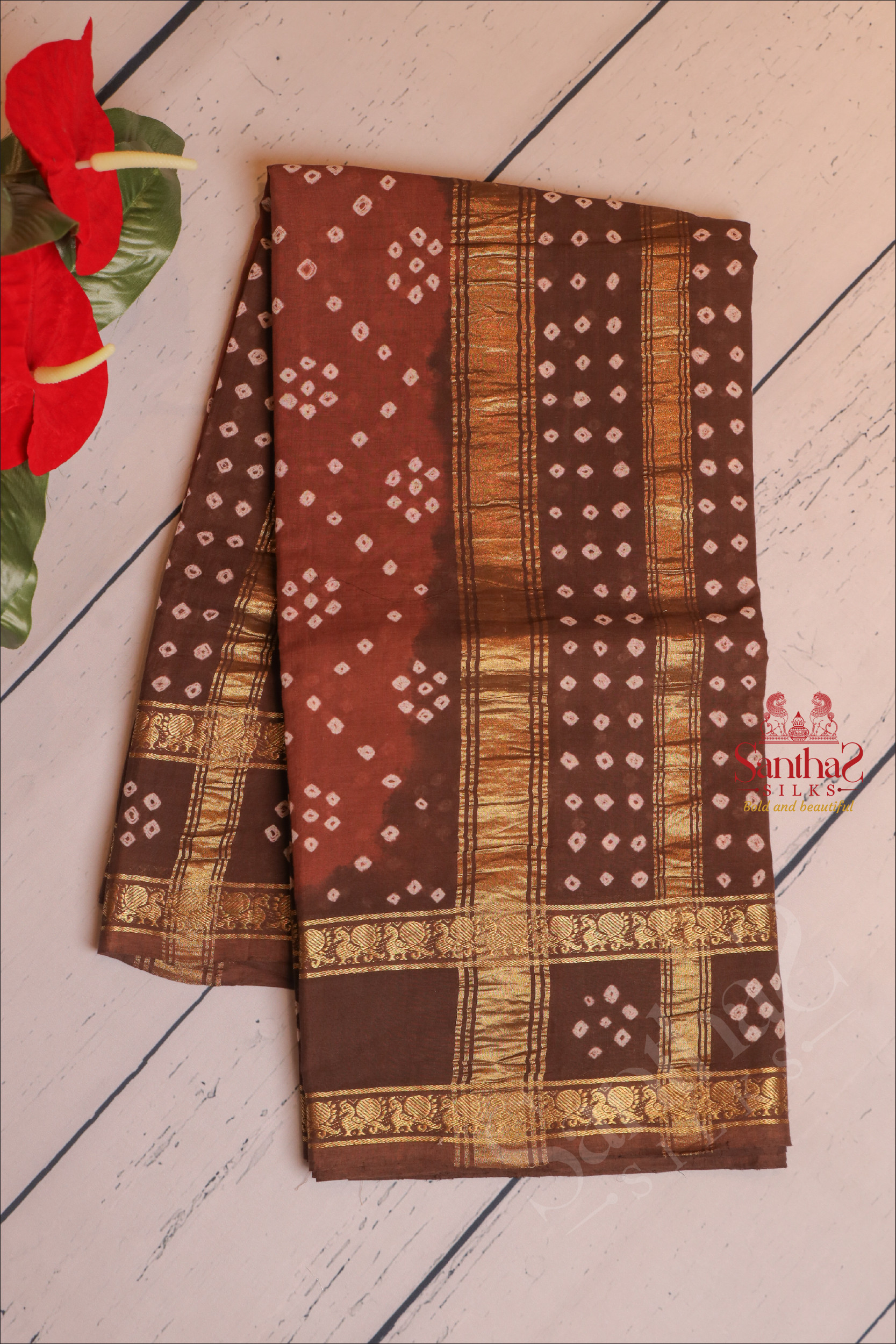 HAND KNOTTED PURE SUNGUDI COTTON SAREE IN BROWN COLOUR