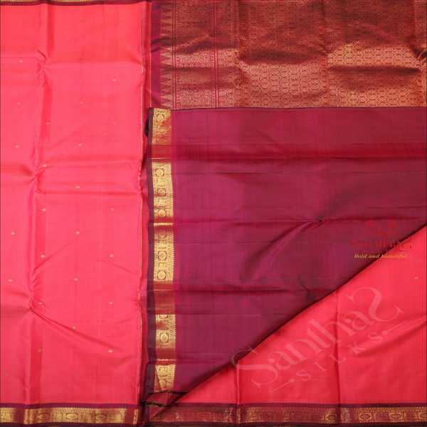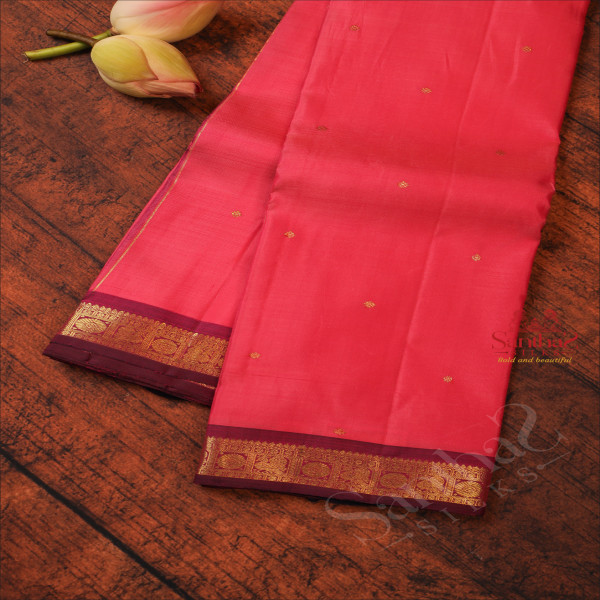 BABY PINK COLOUR CHECKED BODY WITH GOLDEN ZARI BUTTA WITH CONTRAST BLOUSE & BORDER