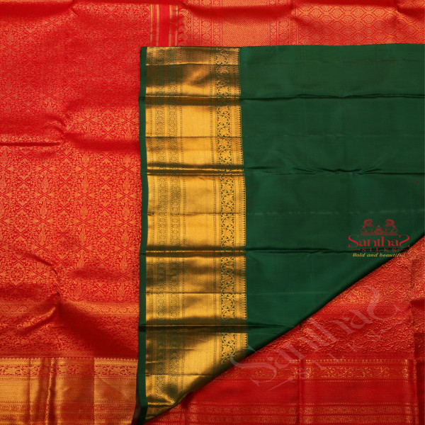 CHERRY RED COLOUR BODY WITH GOLDEN ZARI FANCY BUTTAS AND CONTRAST PALLU & BLOUSE