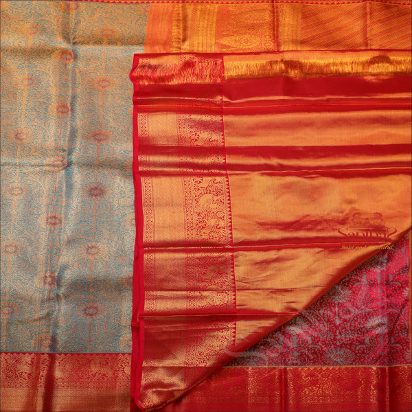 SKY BLUE COLOUR BODY WITH GOLDEN JACQUARD EMBOSED WITH CONTRAST BLOUSE & BORDER