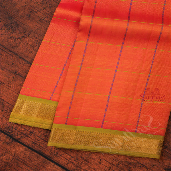 PEACH ORANGE COLOUR CHECKED BODY WITH CONTRAST BLOUSE & WITHOUT BLOUSE