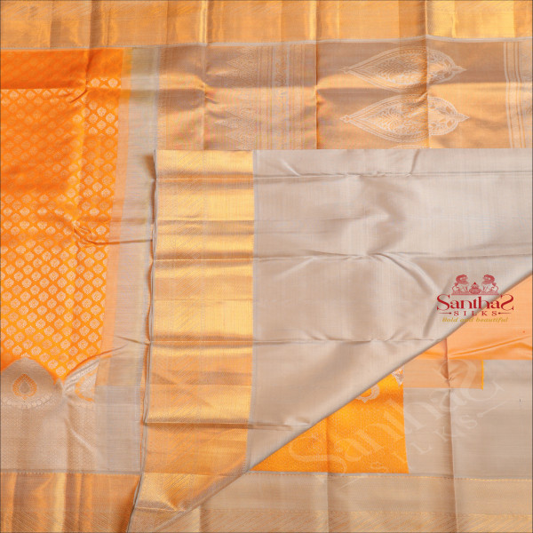 GREY & MANGO YELLOW COLOUR BODY WITH SILVER ZARI BUTTAS AND CONTRAST PALLU & BLOUSE