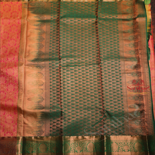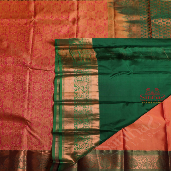PEACH PINK COLOUR BODY WITH JACQUARD FLORAL EMBOSED WITH CONTRAST BLOUSE & BORDER
