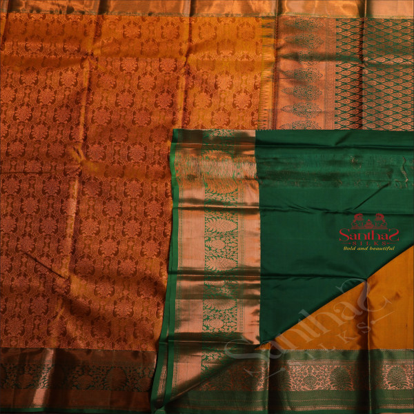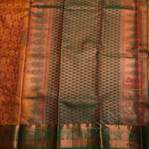 MUSTARD YELLOW COLOUR BODY WITH JACQUARD FLORAL EMBOSED WITH CONTRAST BLOUSE & BORDER