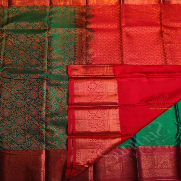 GREEN COLOUR BODY WITH JACQUARD FLORAL EMBOSED WITH CONTRAST BLOUSE & BORDER