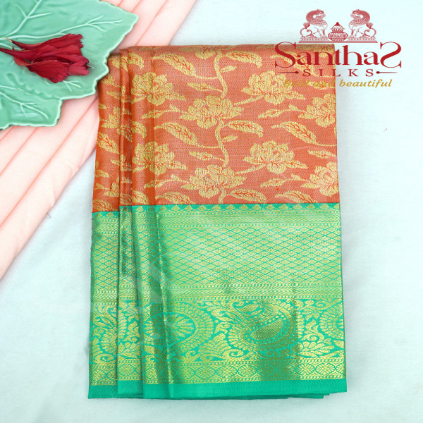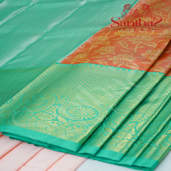 ORANGE COLOUR FLORAL IN BODY WITH CONTRAST BLOUSE & BORDER