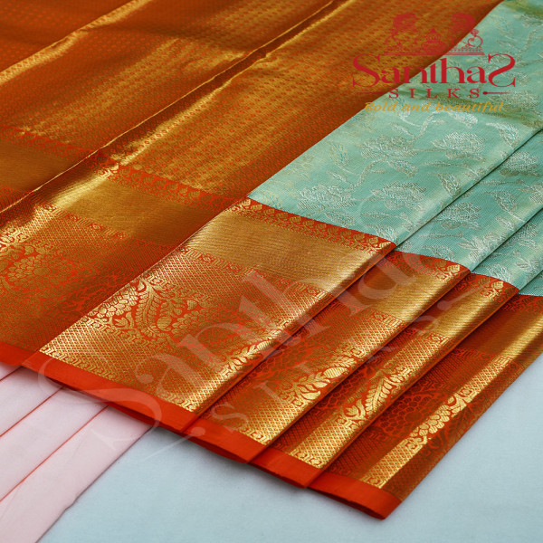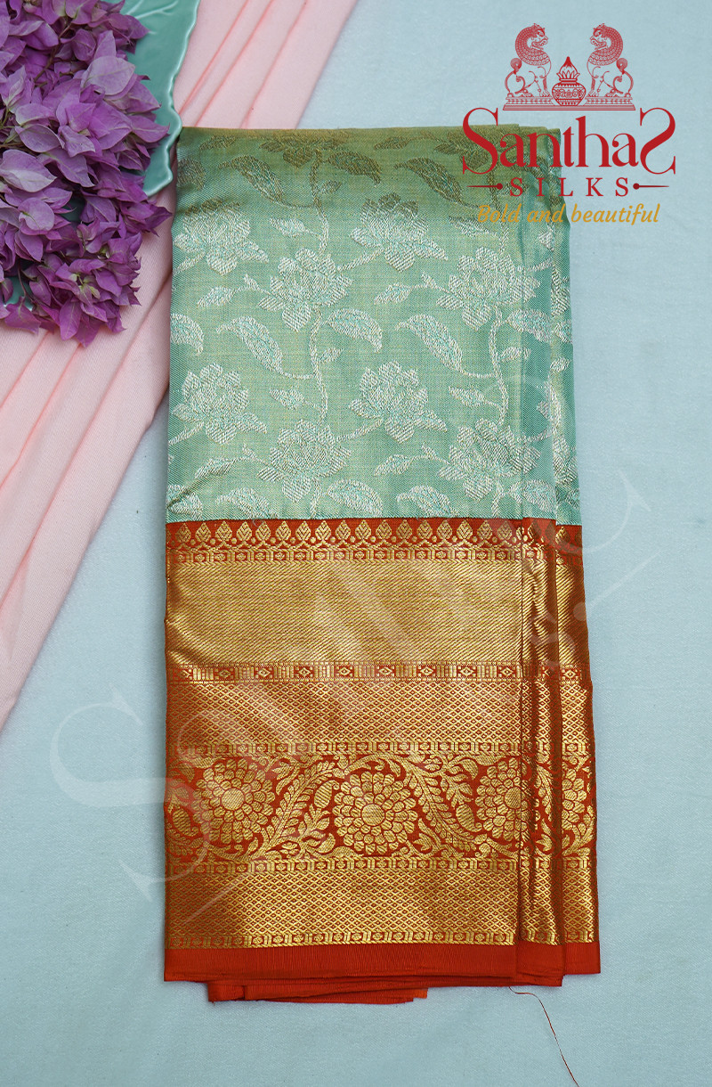 TISSUE PASTEL GREEN FLORAL IN BODY WITH CONTRAST BLOUSE & BORDER