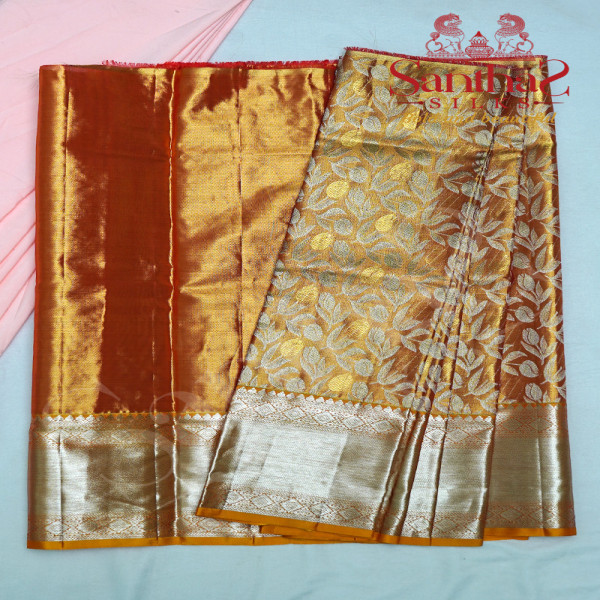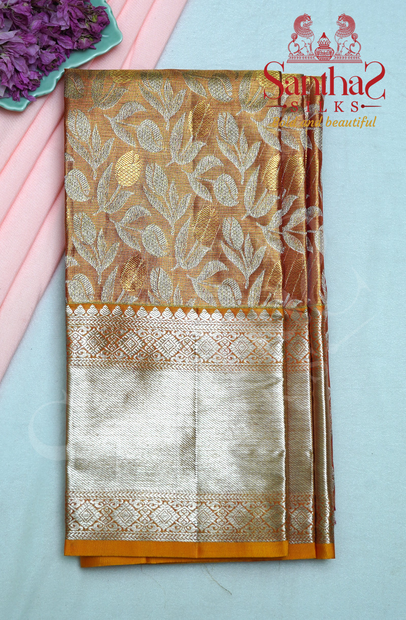 GOLDEN ORANGE TISSUE BODY WITH CONTRAST BLOUSE & BORDER