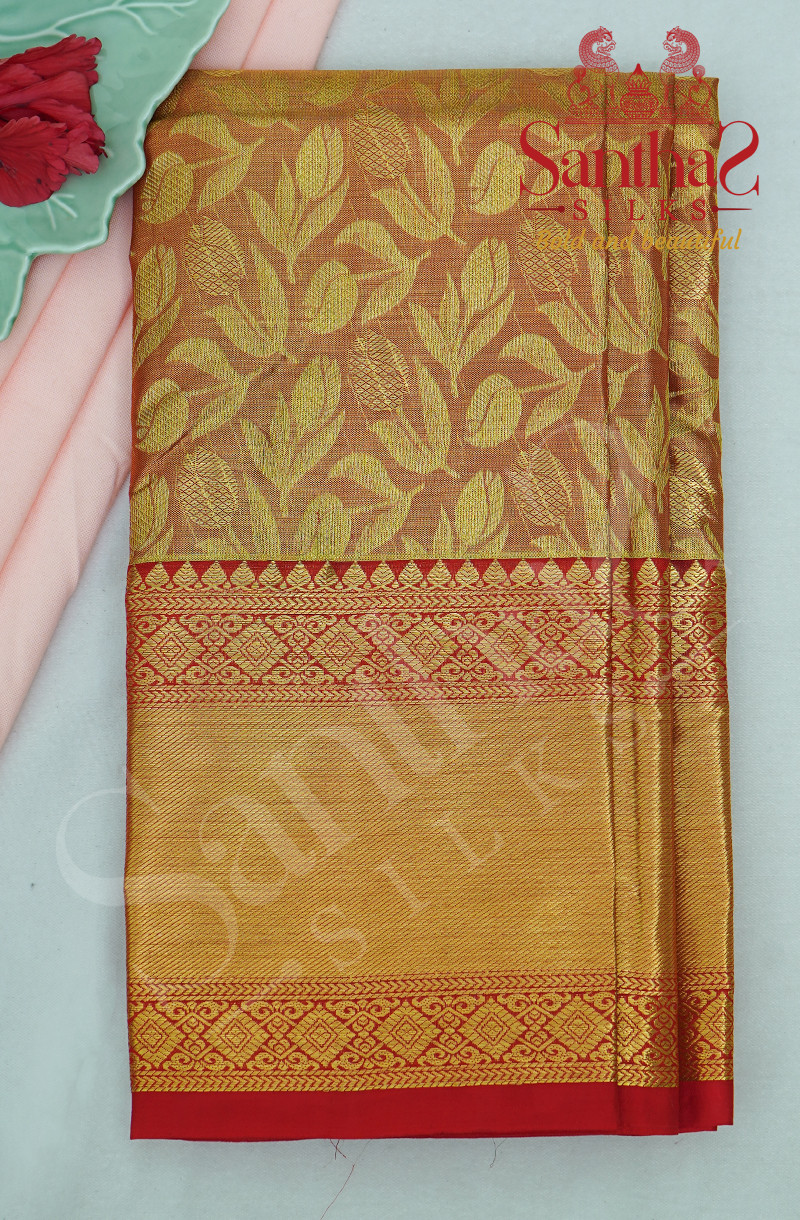 GOLDISH RED BODY FLORAL WITH CONTRAST BLOUSE & BORDER
