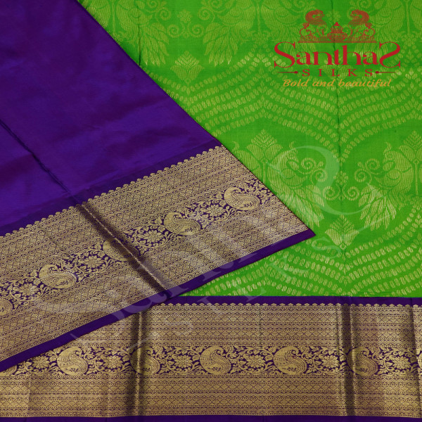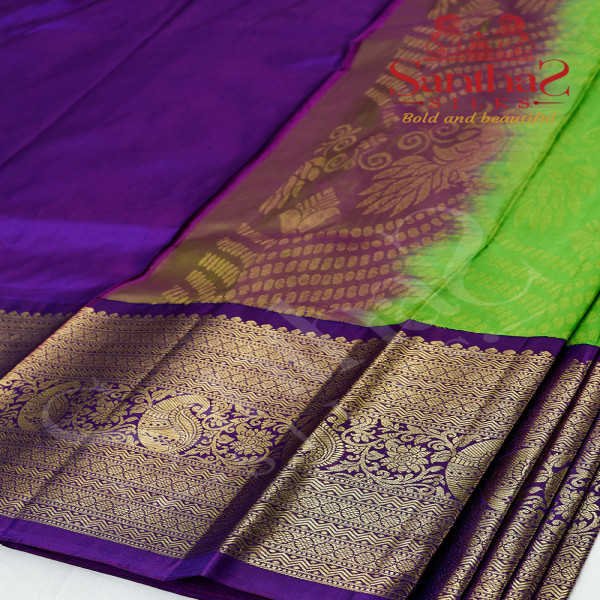 PARROT GREEN COLOUR BODY IN FLORAL PATTERN WITH CONTRAST BLOUSE & BORDER