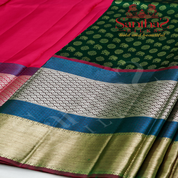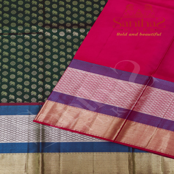 GREEN COLOUR BODY IN ZARI BUTTA WITH CONTRAST BLOUSE & BORDER