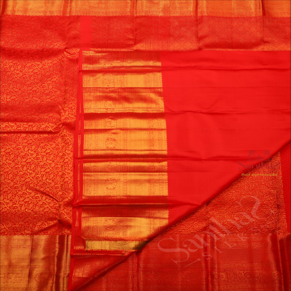 RED COLOUR BODY WITH JACQUARD FLORAL BUTTA WITH SELF BLOUSE & BORDER