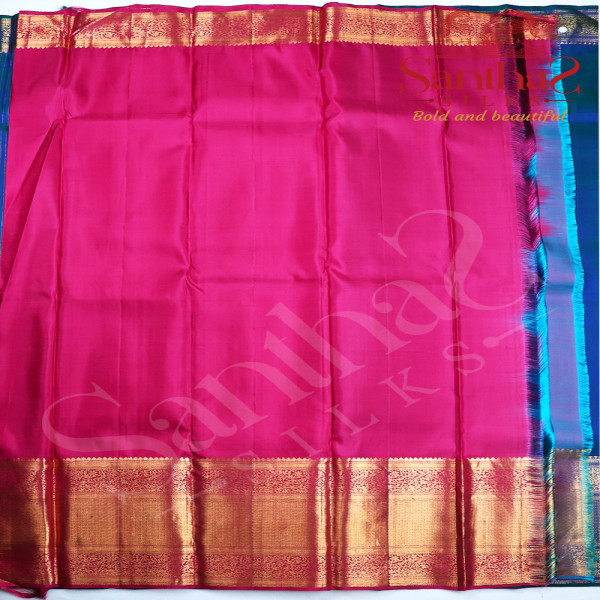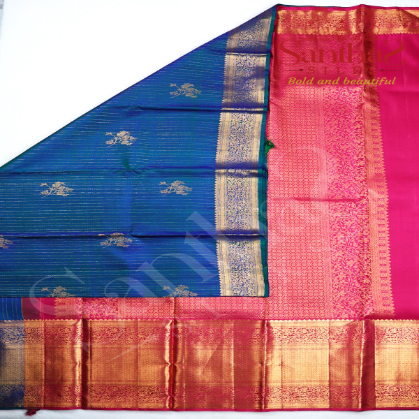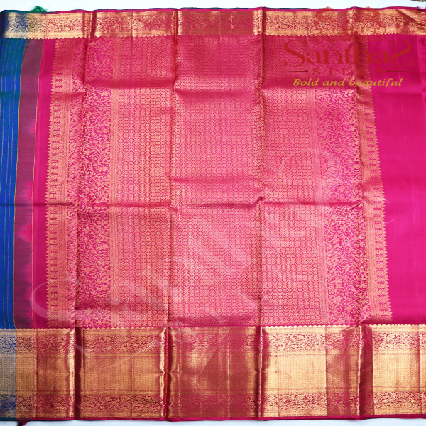 Peacock Blue Vairaoosi Pure Silk Saree with Self Border