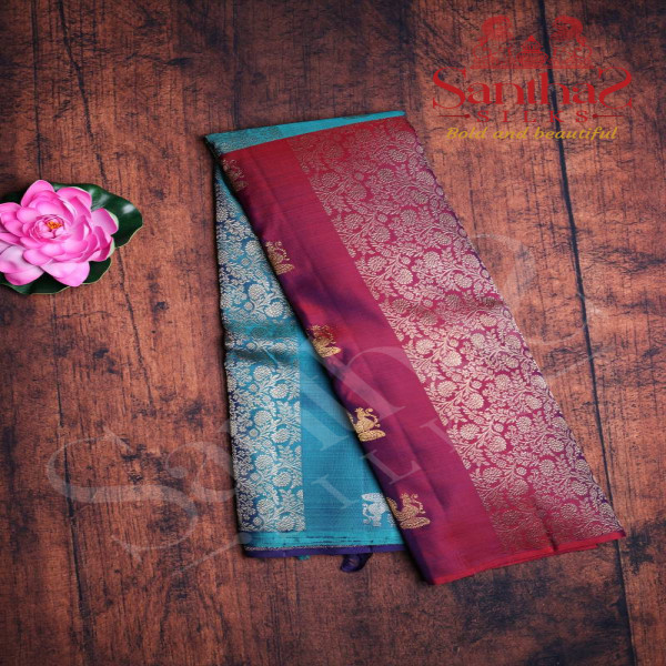 PEACOCK BLUE COLOUR BODY HALF & HALF WITH CONTRAST BLOUSE