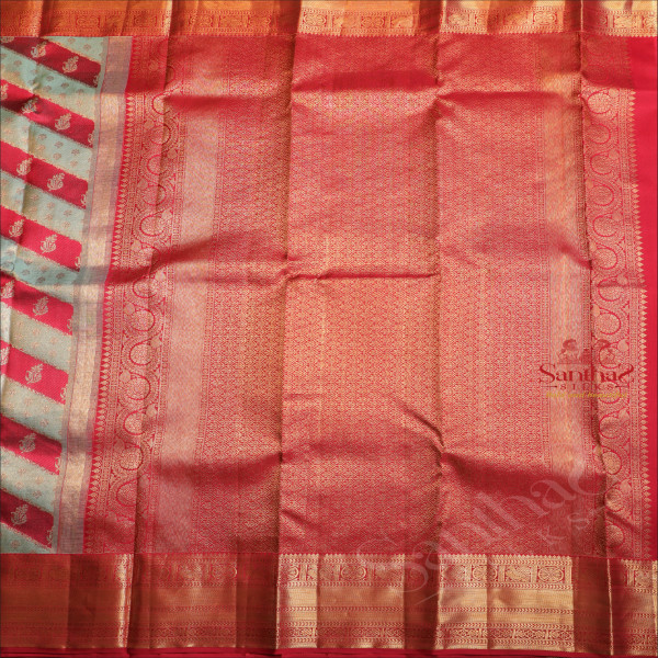 AQUA BLUE & DARK ROSE COLOUR MIXED BODY WITH GOLDEN ZARI FANCY DESIGN PATTERN AND CONTRAST PALLU & BLOUSE