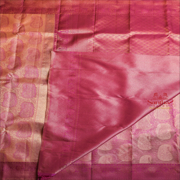 PASTEL PINK COLOUR BODY WITH GOLDEN ZARI FANCY DESIGNS & MANGO MOTIFS AND CONTRAST PALLU & BLOUSE