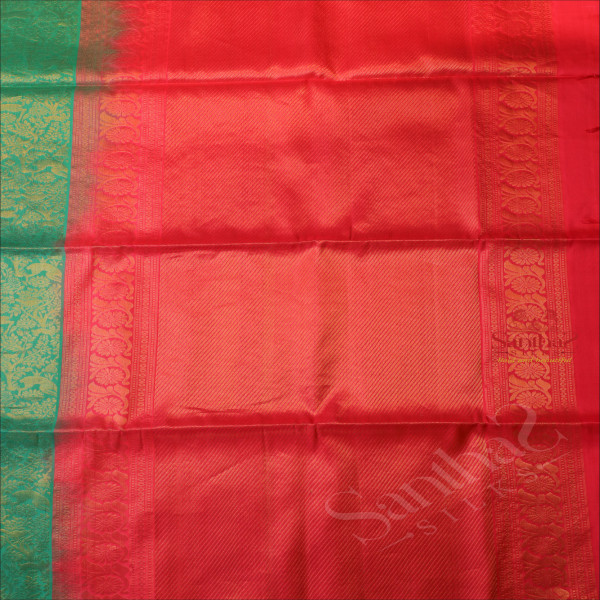 SHAMROCK GREEN COLOUR BODY WITH FULL GOLDEN ZARI FLOWER MIXED PATTERN AND CONTRAST COLOUR PALLU & BLOUSE
