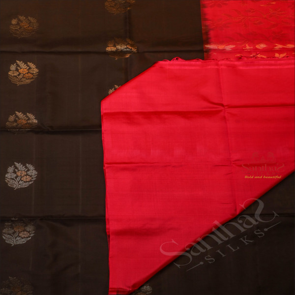 BLACK COLOUR BODY WITH GOLDEN ZARI FLORAL BUTTA WITH CONTRAST BLOUSE & BORDER