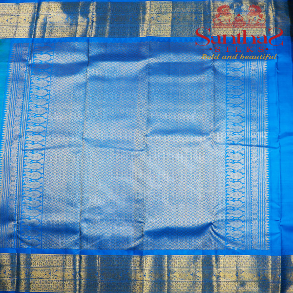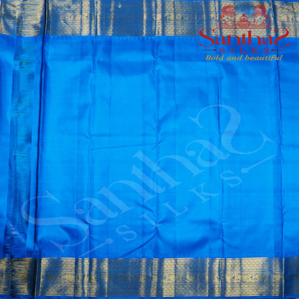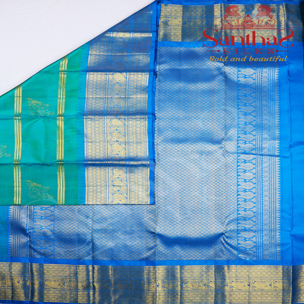 Green Double Shade Pure Silk Saree with Blue Border