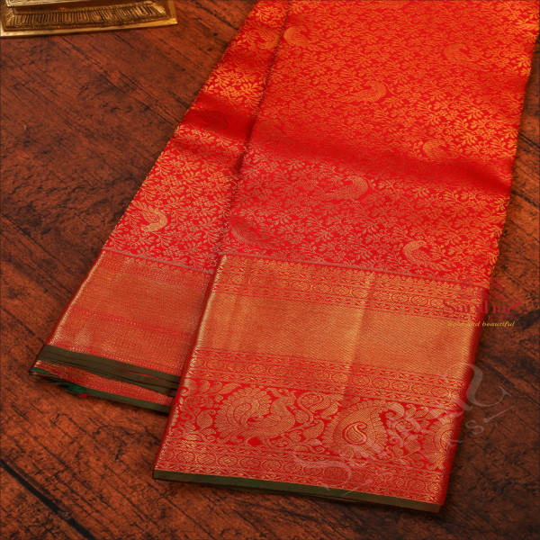 RED COLOUR BODY WITH JACQUARD EMBOSED PARROT BUTTA WITH CONTRAST BLOUSE