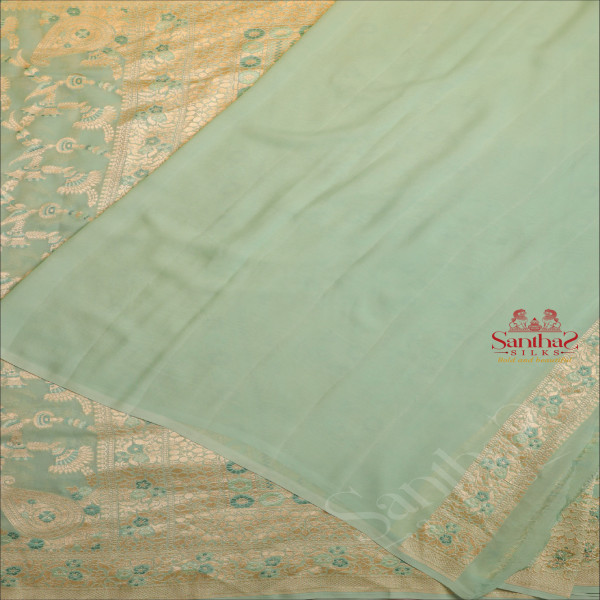 GEORGETTE BANARAS SILK SAREE IN PASTEL BLUE COLOUR WITH SELF COLOUR BLOUSE