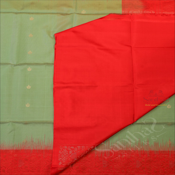 PASTEL GREEN COLOUR BODY WITH GOLDEN ZARI BUTTA AND CONTRAST COLOUR PALLU & BLOUSE