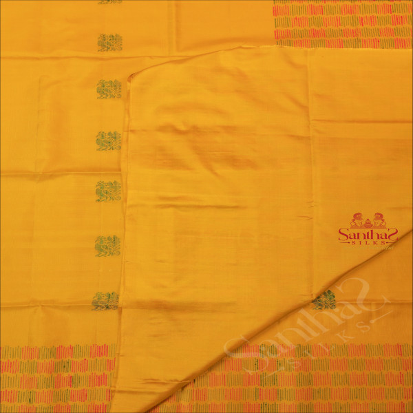 AMBER YELLOW COLOUR BODY WITH GREEN COLOUR THREAD ANNAM MOTIFS AND SELF COLOUR BLOUSE & PALLU