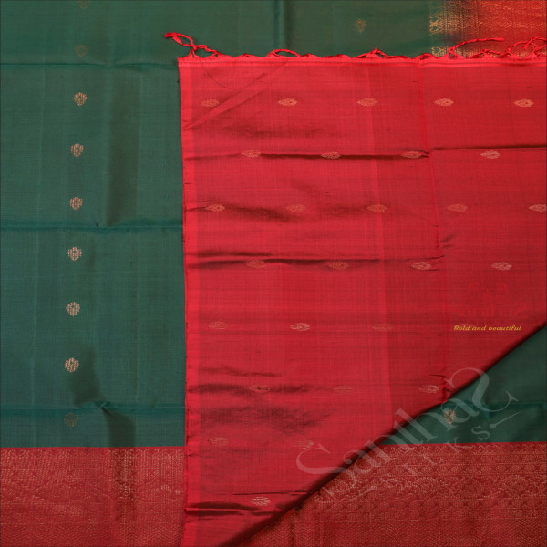 FOREST GREEN COLOUR BODY WITH GOLDEN ZARI BUTTAS AND CONTRAST COLOUR PALLU & BLOUSE