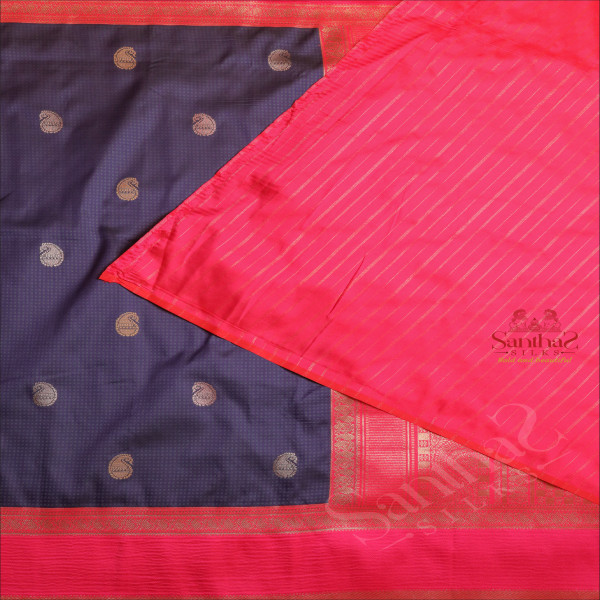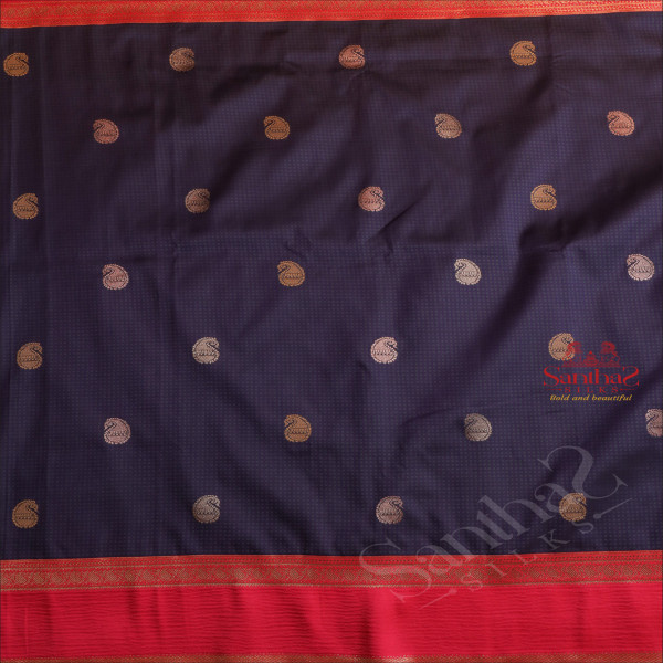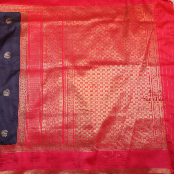 PURE BANARAS SILK SAREE IN NAVY BLUE COLOUR WITH CONTRAST PALLU & BLOUSE