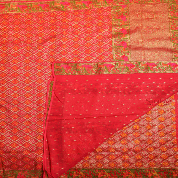 GEORGETTE MATERIAL IN BANDHINI PATTERN SAREE IN RANI PINK COLOUR