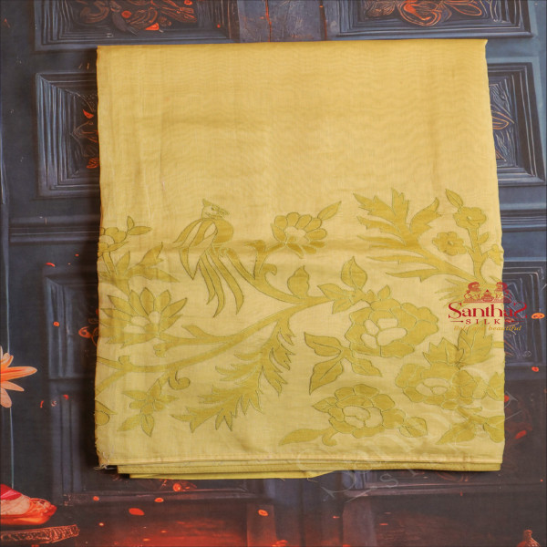 COTTON SAREE WITH APPLICK WORK IN GREEN APPLE COLOUR