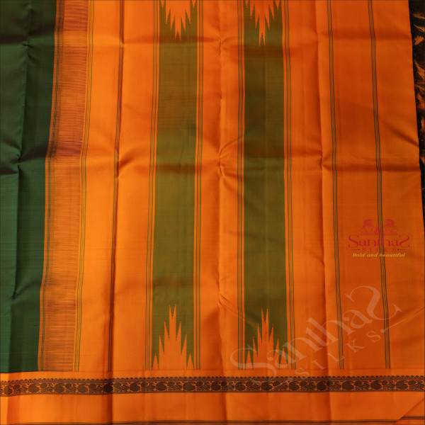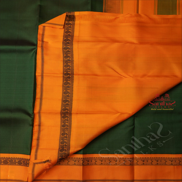 BOTTLE GREEN COLOUR PLAIN BODY WITH CONTRAST BLOUSE & BORDER