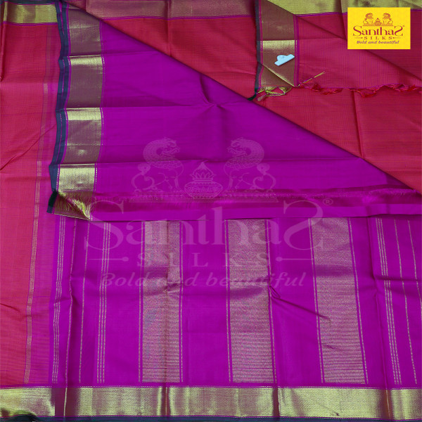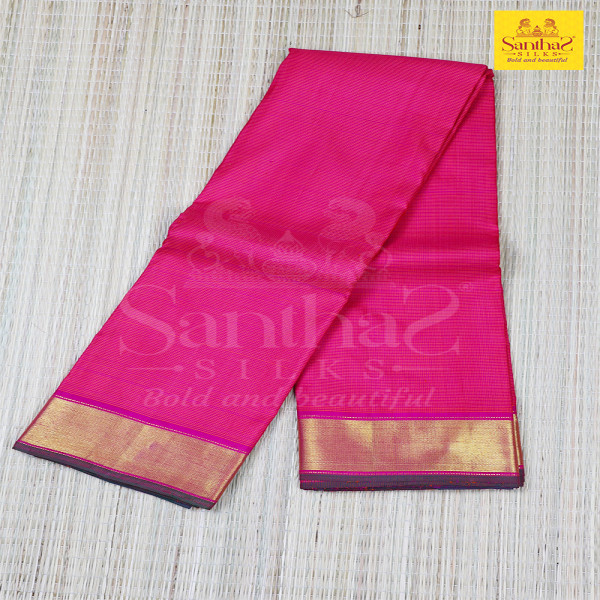 Mangalagiri Tiny Checked Pink Body with Pinkish Green Getti Border