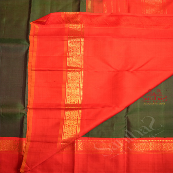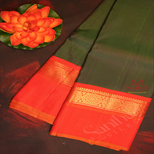 DARK GREEN COLOUR PLAIN BODY WITH CONTRAST BLOUSE & BORDER