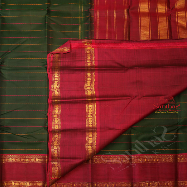 GREEN COLOUR BODY WITH STRIP LINES WITH GANGA JAMUNA BORDER & CONTRAST BLOUSE