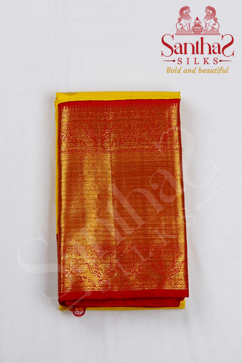 Yellow Body Mango Butta with Evening Morning Korvai Border