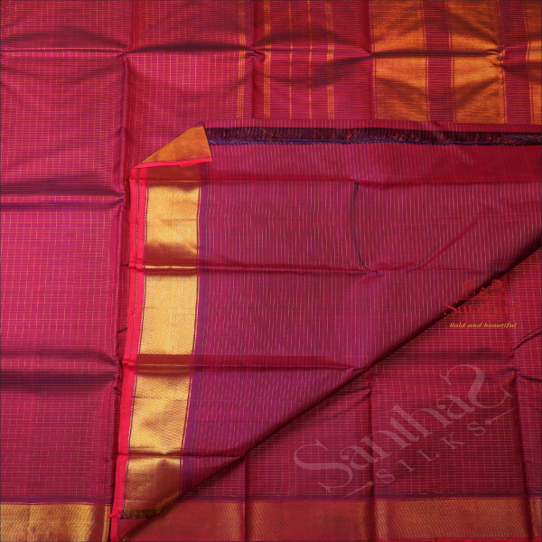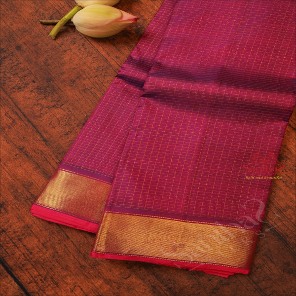 VIOLET COLOUR CHECKED BODY WITH GOLDEN ZARI BORDER & SELF BLOUSE