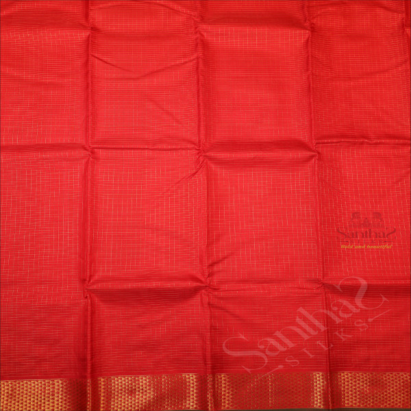 RED COLOUR CHECKED BODY WITH SELF BLOUSE & BORDER