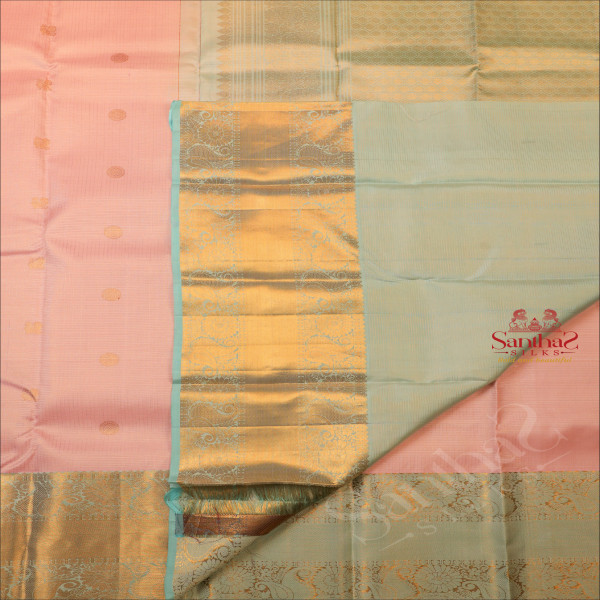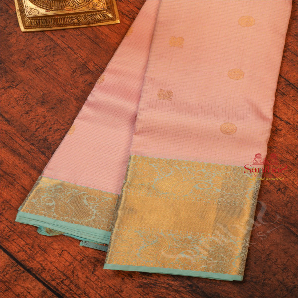 BABY PINK COLOUR CHECKED BODY WITH GOLDEN ZARI ANNAM CHAKKARAM BUTTA WITH CONTRAST BLOUSE & BORDER