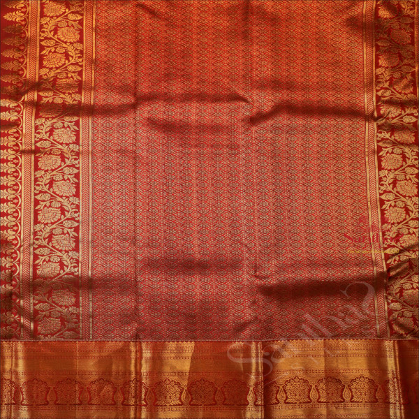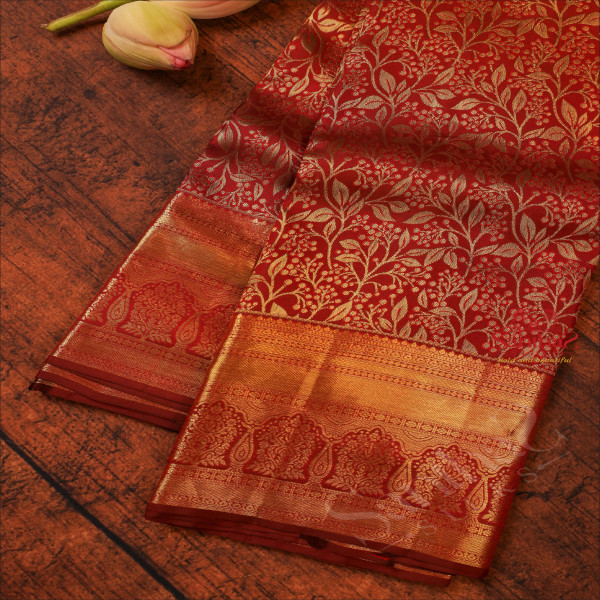 MAROON COLOUR BODY WITH GOLDEN JACQUARD FLORAL EMBOSED WITH SELF BLOUSE & BORDER