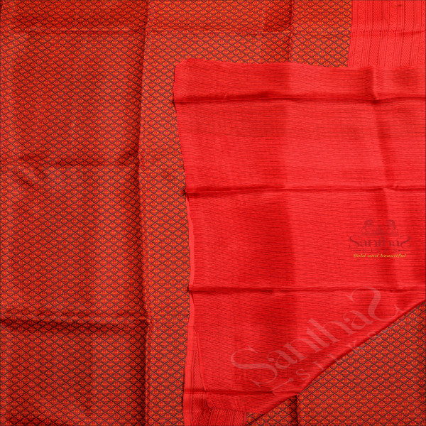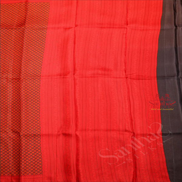BLACK & RED PRINTED SILK SAREE WITH FLOWER MOTIFS AND CONTRAST PALLU & BLOUSE